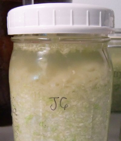 The cabbage in all jars is looking more yellow now, and less green.