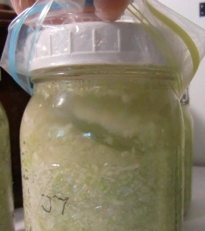 You can see the cabbage has started to wilt a little bit. No visible mold or yeast, though.