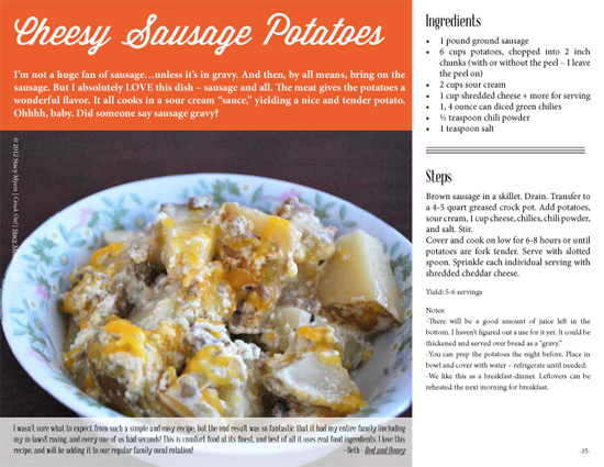 Want a peek at the book? Check out Stacy’s Cheese Sausage Potatoes pdf.